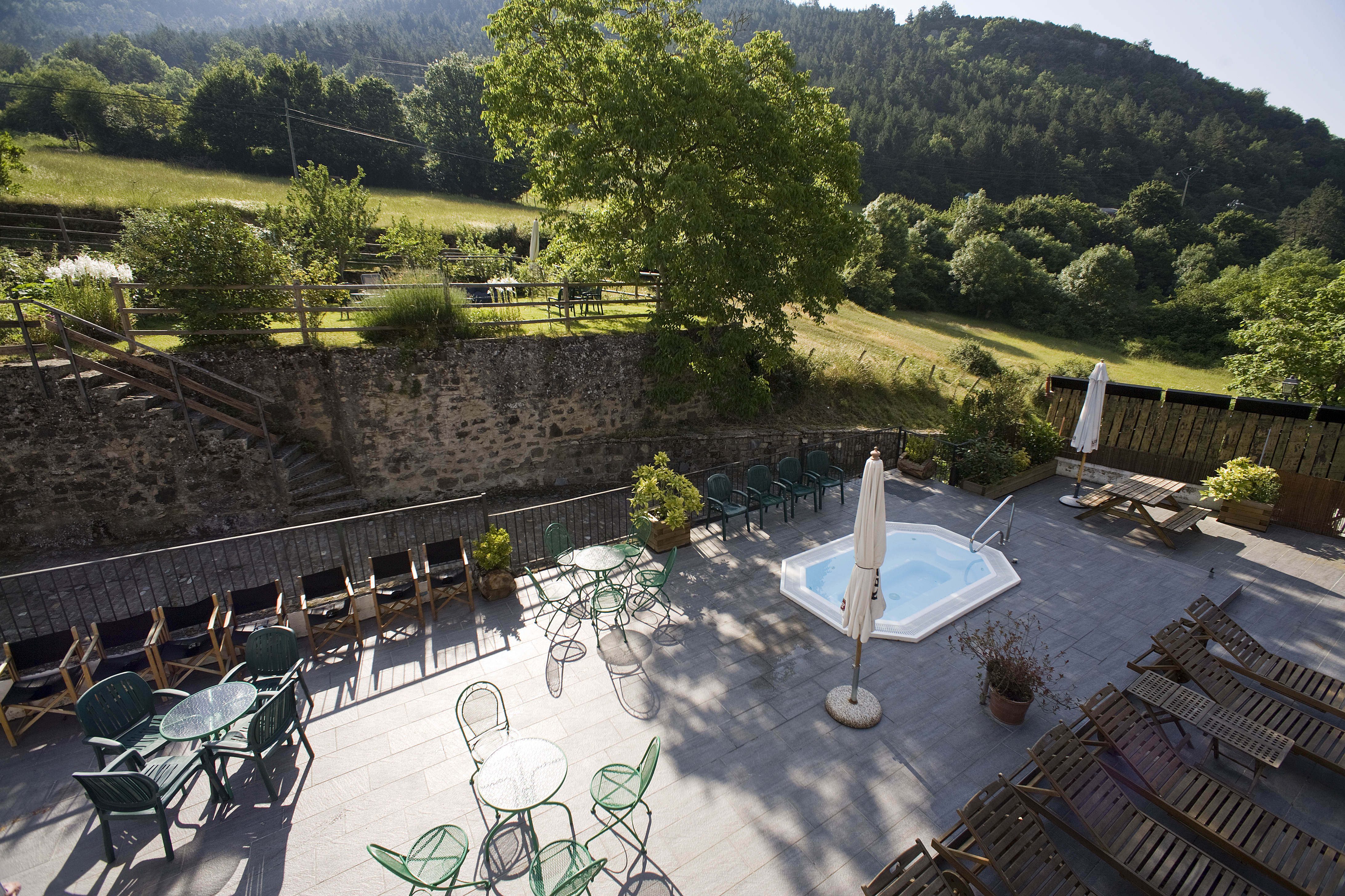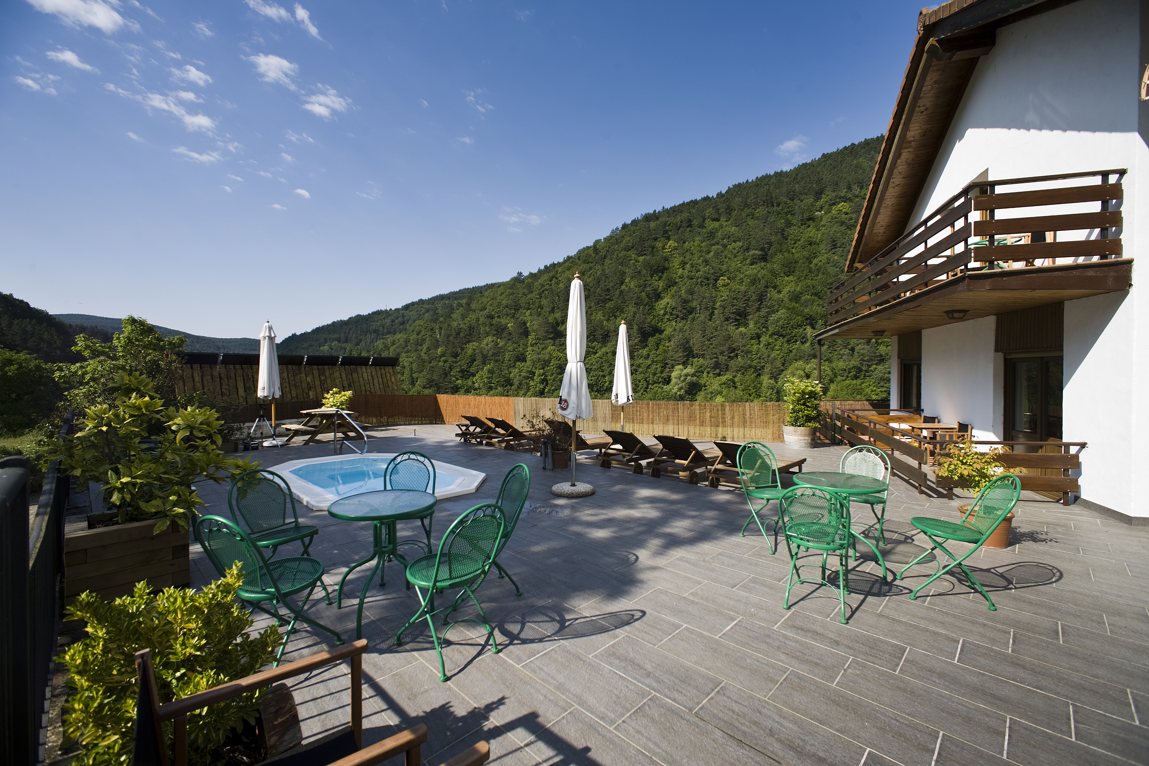 - Habitación con cama doble de 1.5m y terraza con mesa y dos sillas.