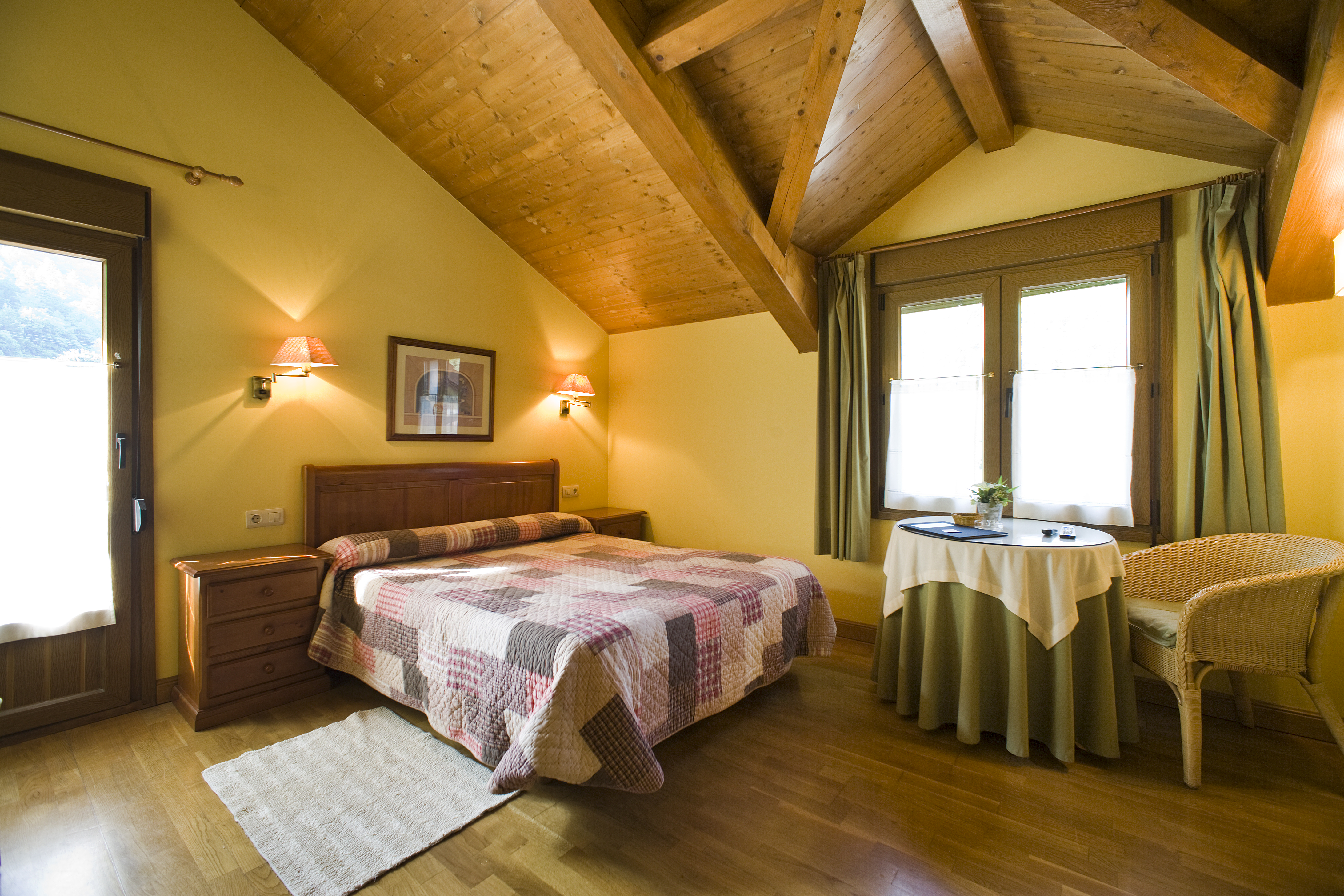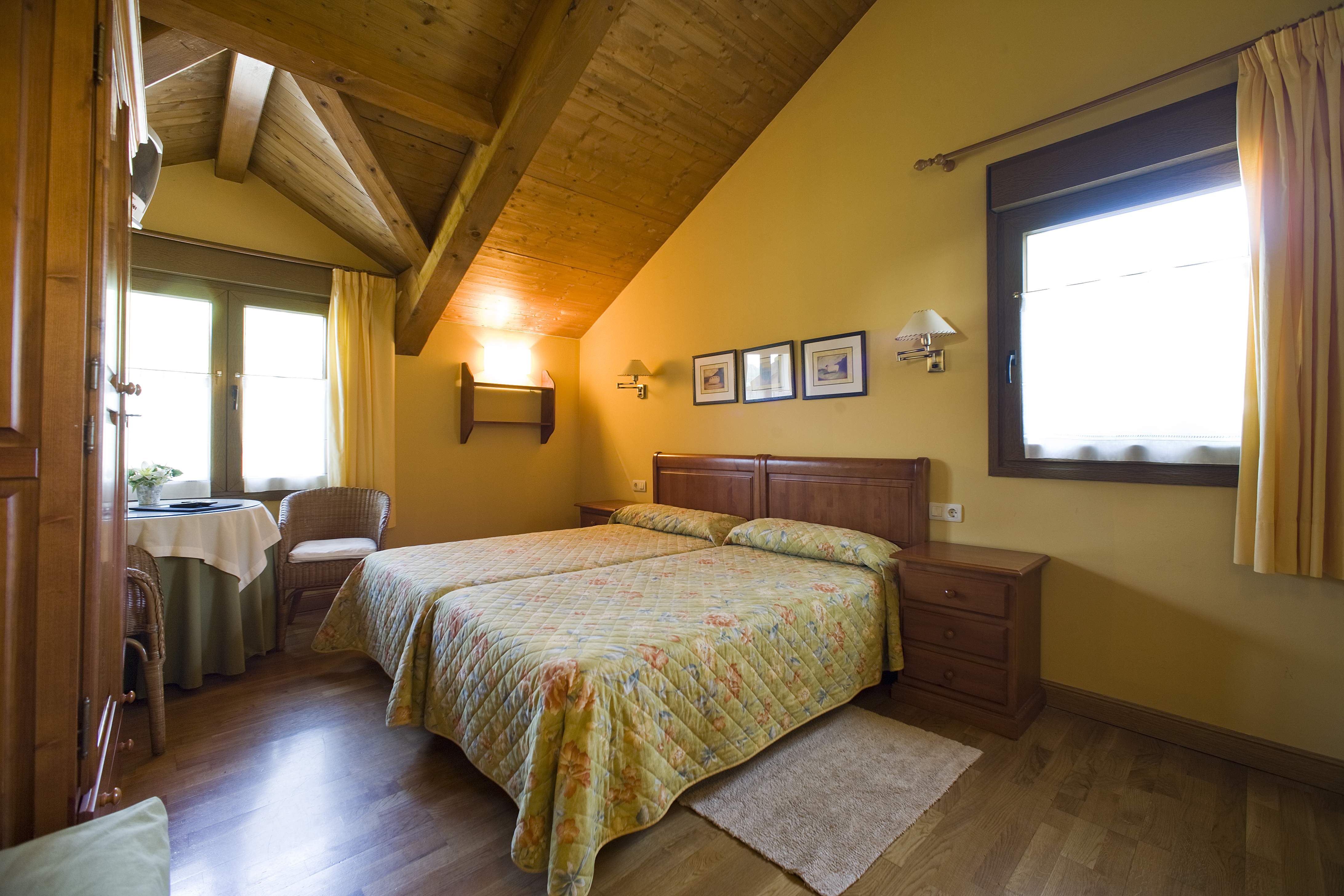 Las habitaciones del Hostal Rural Salazar son amplias y luminosas y están decoradas en un estilo rústico. Las habitaciones ubicadas en la primera planta cuentan con una terraza, mientras que las situadas en el ático presentan techos abuhardillados con vigas de madera.